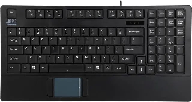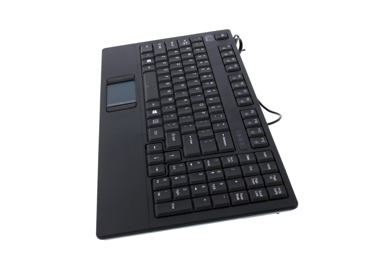 The Adesso Industrial Compact Scissor-Switch Touchpad keyboard combines the control of an integrated GlidePoint touchpad with the features of a scissor-switch keyboard to provide quiet typing and great tactile key response. This ultra-slim compact keyboard is designed according to EIA-RS-310C specification, which can be mounted to any rackmount drawers and meets any industrial environment requirements.