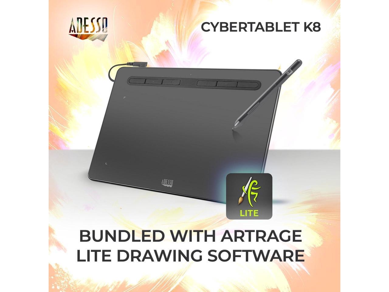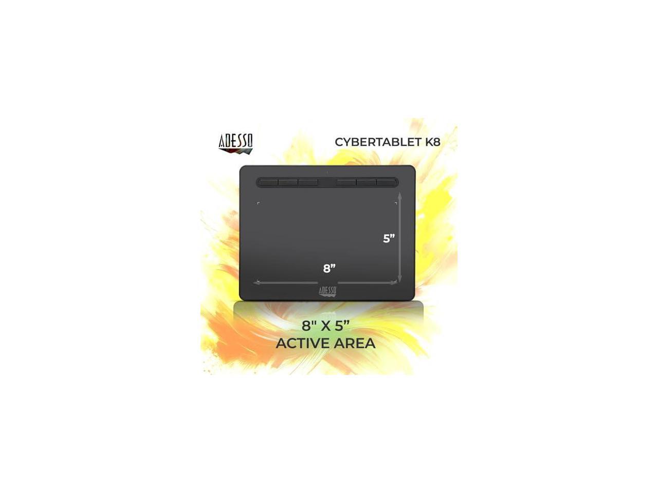 Adesso 8" x 5" Graphic Tablet - Graphics Tablet - 8" x 5" - 5080 lpi Cable - 8192 Pressure Level - Pen - 1 - Mac, PC - Black