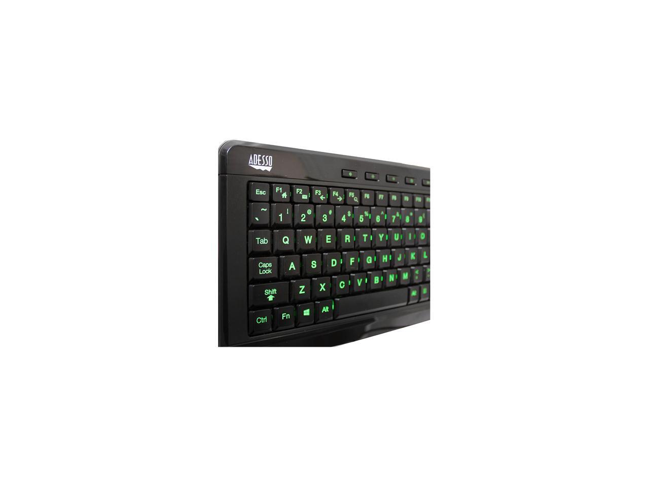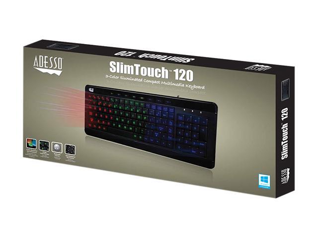 Adesso AKB-120EB SlimTouch 3 RGB colors illuminated compact size USB keyboard with multimedia hot keys, 2X large print keycap