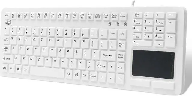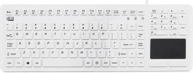 Adesso AKB-270UW SlimTouch Antimicrobial Waterproof USB Compact size Touchpad keyboard, 15.50" x 5.50" x 0.43", great for hospital medical usage. (White)