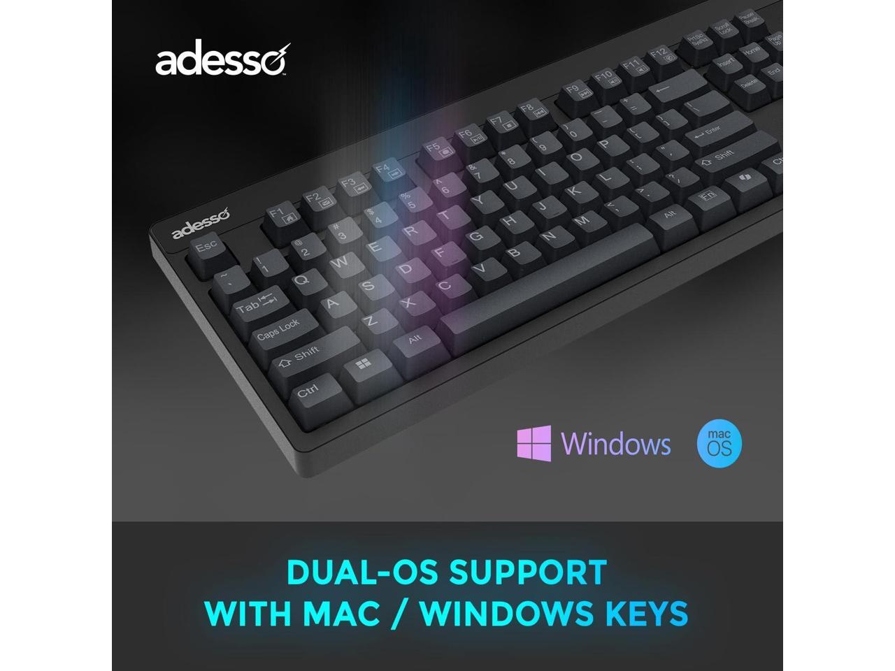 ADESSO EasyTouch 130 Full-Sized USB Wired Mechanical Keyboard with Brown Switches, Dedicated Copilot AI Hotkey, Gasket-Mounted for Quiet Typing, 2X Large Print Keycaps, and N-Key Rollover for Windows