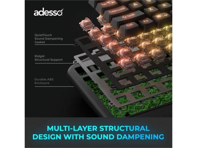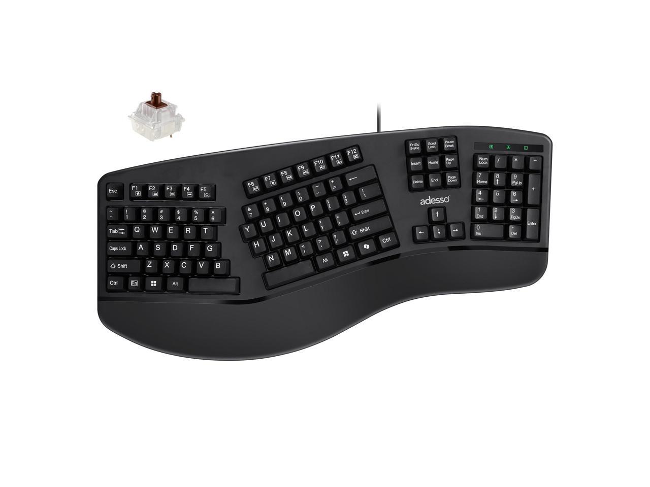 Adesso EasyTouch 150 Keyboard - Cable Connectivity - USB Interface - 104 Key(s) - CoPilot Hot Key(s) - Windows, Mac OS - English (US) - PC, Mac - CHERRY MX Brown Keyswitch