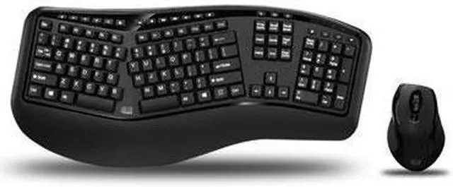 2.4 GHz Wireless Ergo Keyboard and Laser (Switchable DPI 800/1200/1600) Mouse Combo, 20 Hot Keys, Black, USB Dongle
