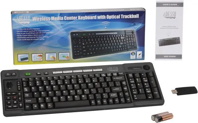 2.4GHz Wireless TechnologyThe Adesso WKB-3200UB wireless keyboard is armed with advanced 2.4GHz wireless technology for ultra-high-speed wireless performance and provides an extended operating range of up to 100 feet for extra workspace freedom and presentation flexibility.