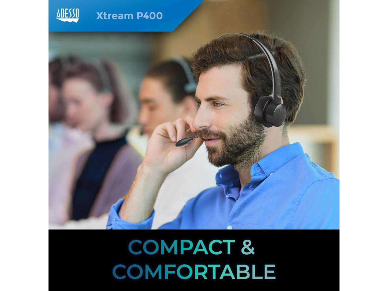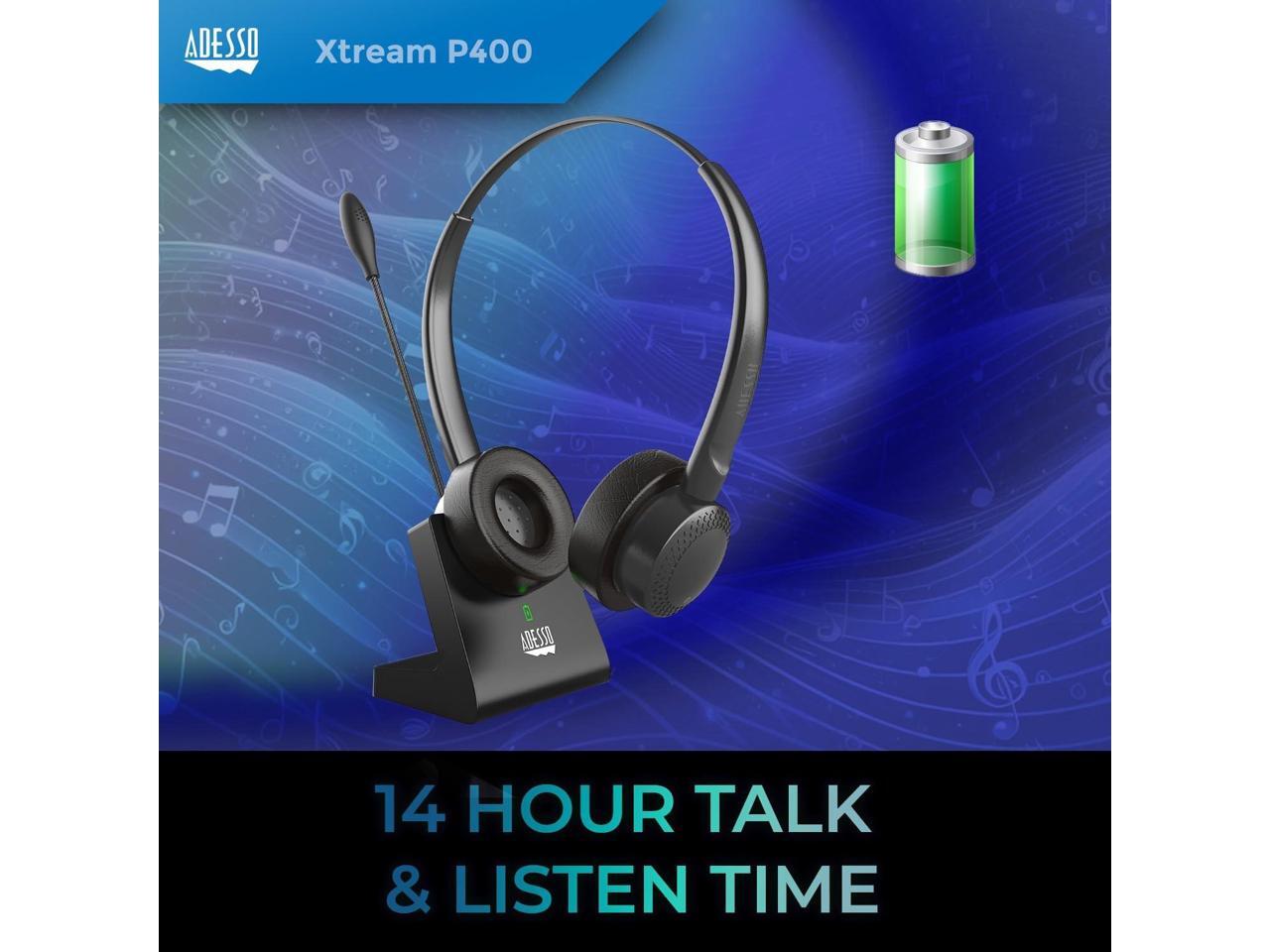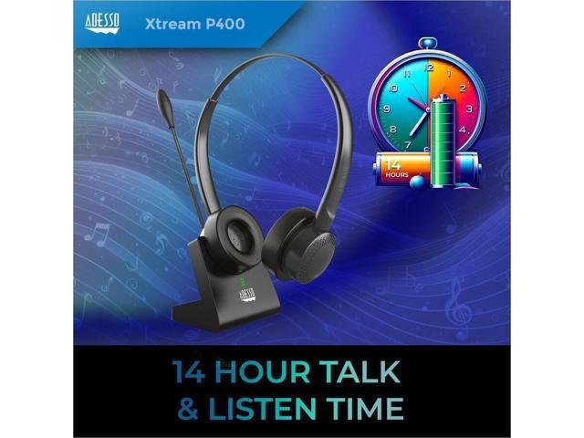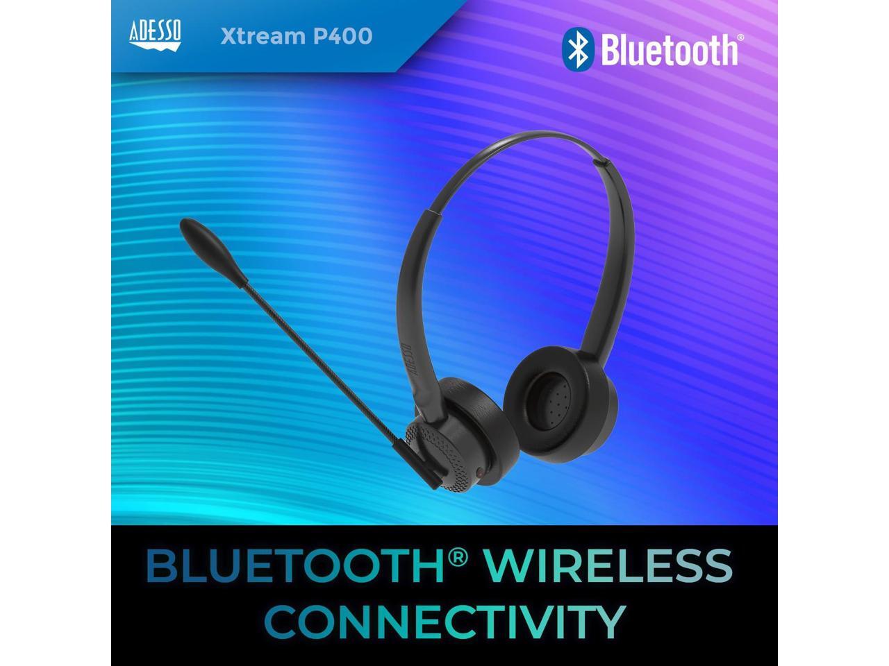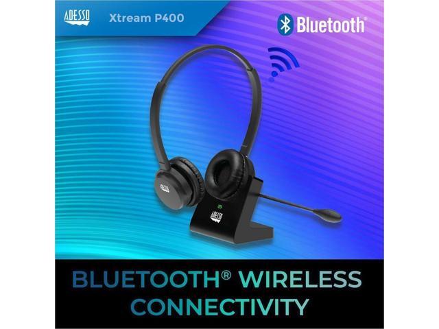 Adesso Xtream P400 Wireless Multimedia Headset with Charging Dock - Stereo - Mini-phone (3.5mm) - Wireless - Bluetooth - 32 Ohm - 20 Hz to 20 kHz - Over-the-head - Binaural - Supra-aural