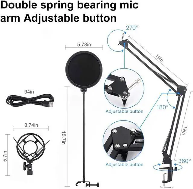 Durable & Flexible: This microphone is built to last with metal construction. The scissor boom arm stand is not only allowing for precise positioning, sturdy enough to hold the mic in place, but also highly flexible in adjustment. The scissor arm is extensible in 135° back and forth, 180° up and down, it also can be folded up. The tension knob provides stability, enabling you to lock it securely and keep it steady during use, ensuring reliable performance and durability in recording scenarios.