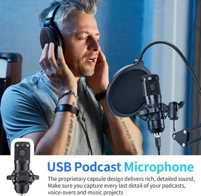 No Disturbance: The cardioid pickup pattern of this condenser microphone enables precise sonic capture, zeroing in on front-facing sound sources and suppressing background noise, enhancing live-streaming experiences. The podcast microphone kit includes a shock mount, table clamp, anti-wind foam cap, and pop filter. These accessories work together to minimize noise from vibrations and plosives, guaranteeing clean audio for podcasting and streaming.