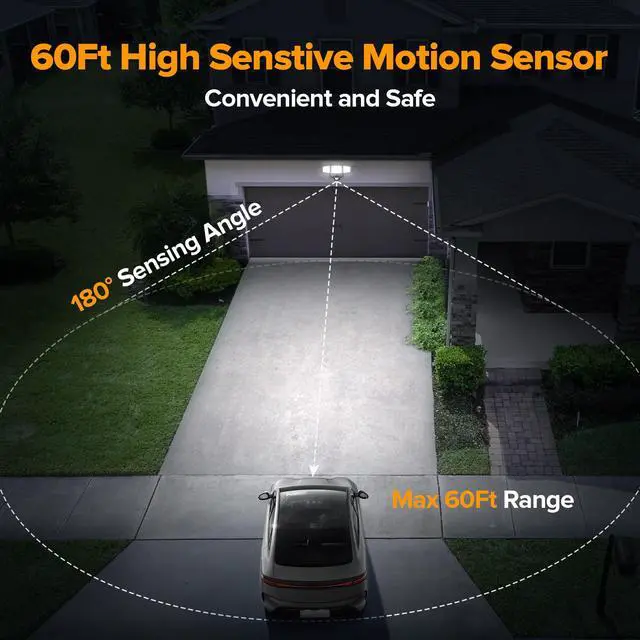 3 Lighting Modes & Wide Applications The solar security light offers three versatile lighting modes: Motion-activated 100% brightness at night; Always-on 10% brightness at night for 8 hours ; Always-on 3% brightness at night with motion-activated 100% brightness. These modes satisfy various usage requirements, making it suitable for outdoor use in garage,yard, porch, and swimming pools, etc.