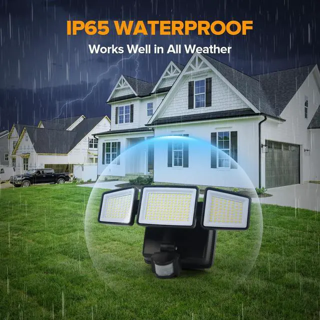 302 Ultra-Bright LED & Wide Angle IlluminationWith 302 ultra-bright LED, the flood light emits a powerful 1800 lumen warm white light (7000K color temperature). The three adjustable heads ensure flexible angle adjustments, ensuring a wide coverage of up to 270 degrees, effectively illuminating larger outdoor spaces.