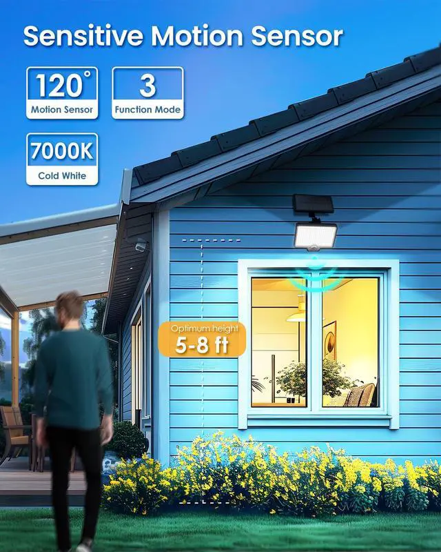 With the highest charging efficiency monocrystalline laminated solar panel,the motion sensor lights outdoor can be fully charged in 5 hours during the day.