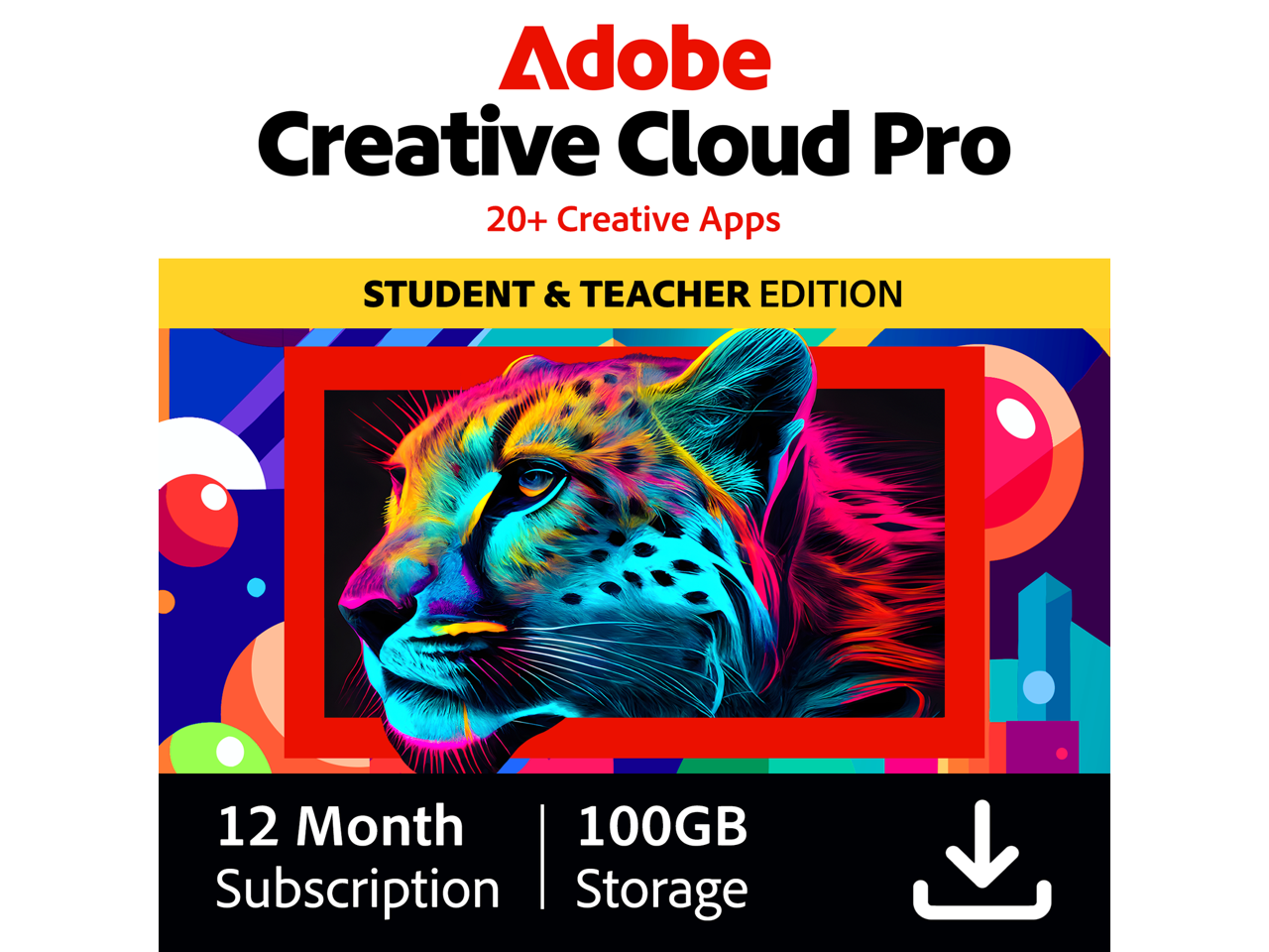 Adobe Creative Cloud Pro | Student & Teacher Edition | 20+ creative apps plus 100GB Storage | 12-Month Subscription | PC/Mac