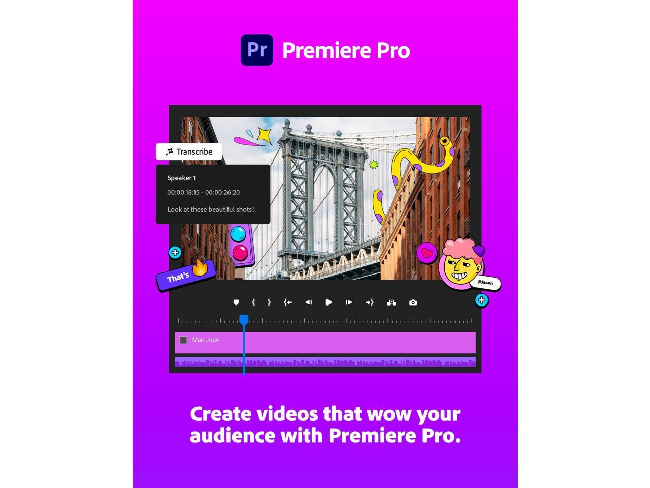 - Level up any project – Edit professional headshots in Photoshop, produce YouTube content with Premiere Pro, design logos with Illustrator, and more.