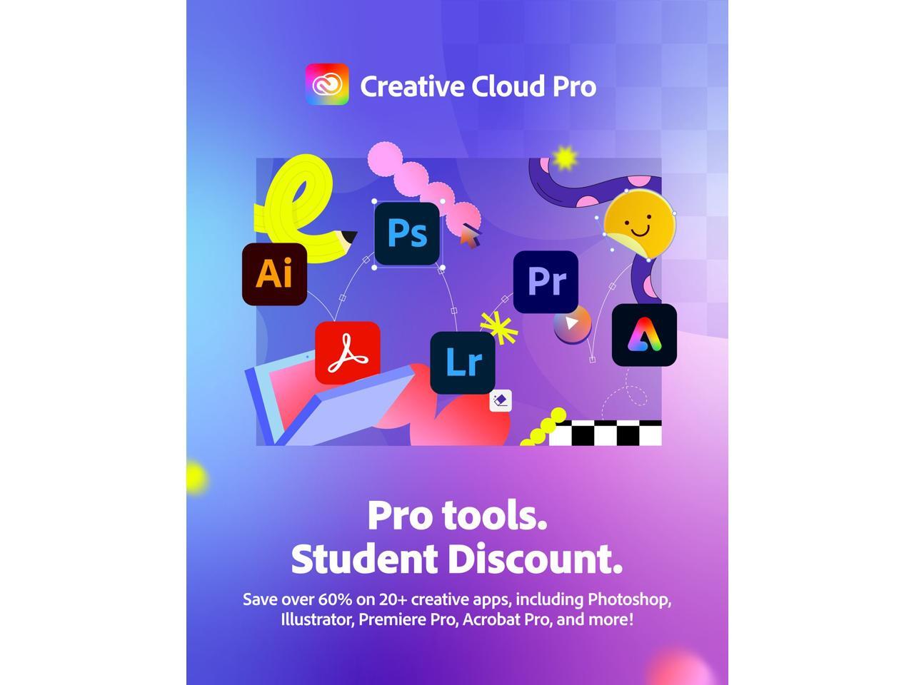 - Best value - Over 60% off the world's leading pro creativity tools. Students and teachers get 20+ industry-leading apps including Photoshop, Illustrator, Premiere Pro, and Acrobat Pro, plus Adobe Firefly creative AI.