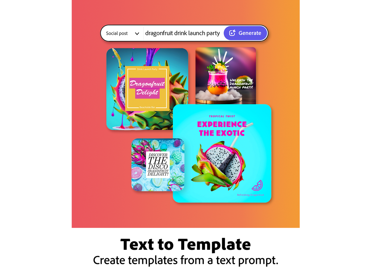 - Your imagination is your only limitation with generative AI tools like Generative Fill, Text to Image, and Text to Template (beta). You type it, Adobe Express Premium generates it.