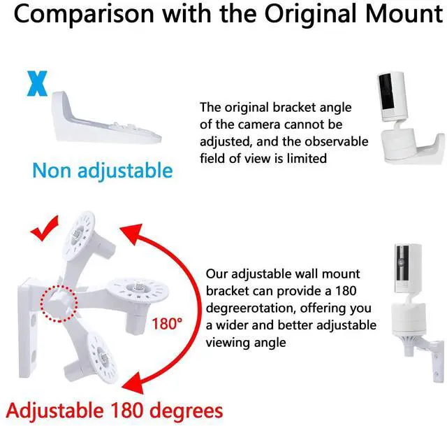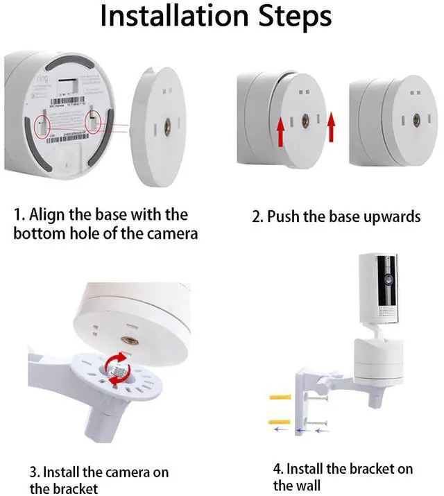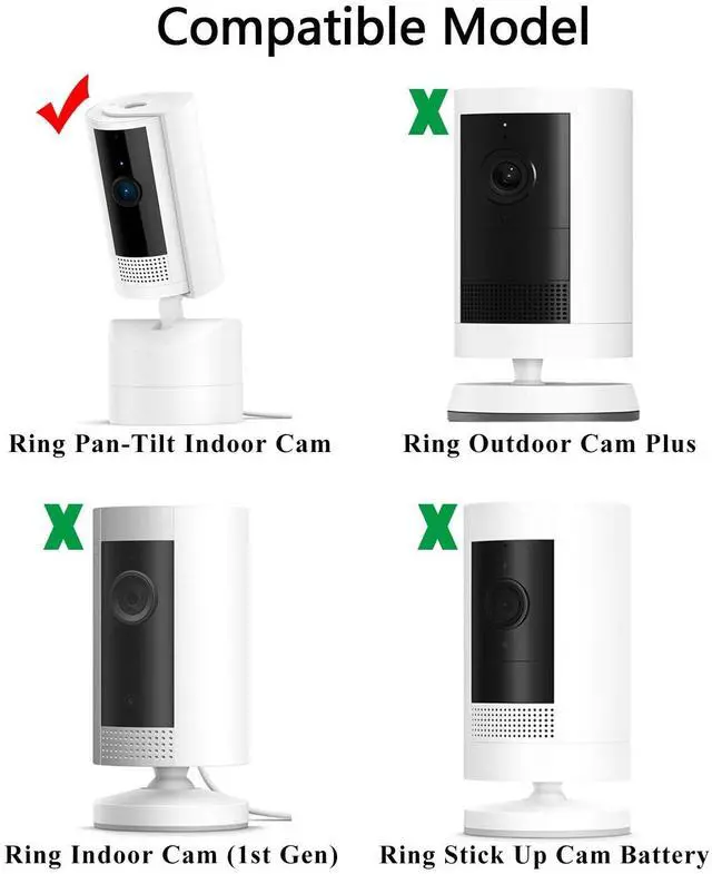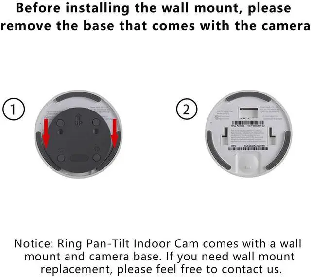 Package Includes: The package includes wall mount bracket compatible with Ring Pan-Tilt Indoor Cam, two pieces long screws and two pieces rubber stoppers. Meet your demands