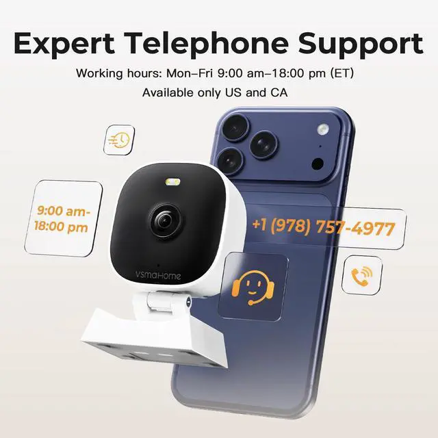 2K HD & Color Night VisionWhether youre watching pets play by day or clearly distinguishing if backyard movement is a cat or a stranger under moonlight, these 2k cameras for home security deliver ultra-clear 2K resolution and full-color night vision. Both our indoor cameras for home security and outdoor home surveillance cameras capture every critical detailno blur, no missed moments. Need help with your camera for home security? Call +1(978)757-4977 for professional consulting to set up and optimize your VSMAHOME camera. Note: Working hours: Mon-Fri 9:00 am-18:00 pm (ET)