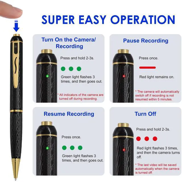 1080P Camera Pen for Family Monitoring Record clear visuals with a single touch. This pen-style video device is ideal for keeping visual notes at home, monitoring daily activities, or documenting family moments.