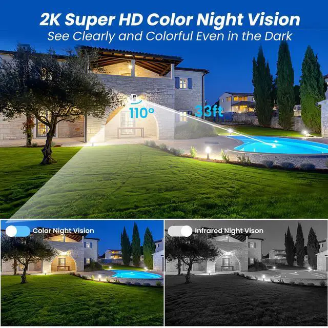 Equipped with 2K resolution and a spotlight, it provides clearer night vision in any lighting environment.