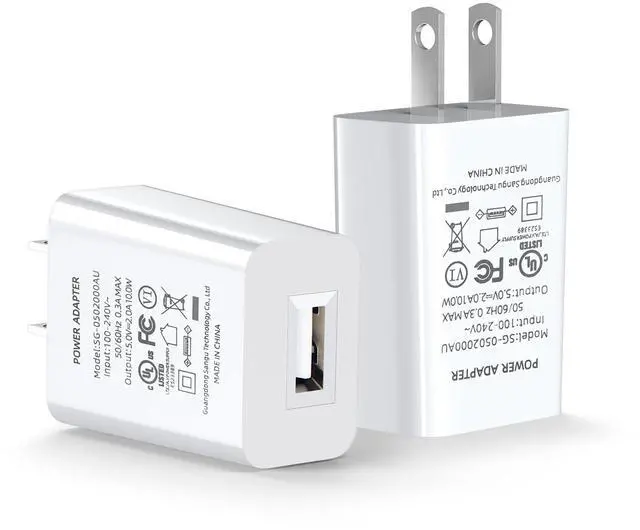 2 pack of USB wall charger; ABS material; White