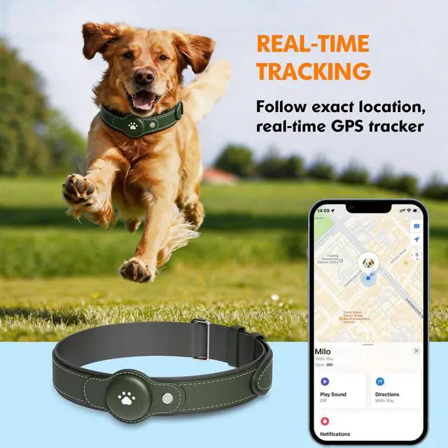 This collar includes a locator and an adjustable design, suitable only for iOS devices (iOS 14.5 and above, iPhone 6S and newer).