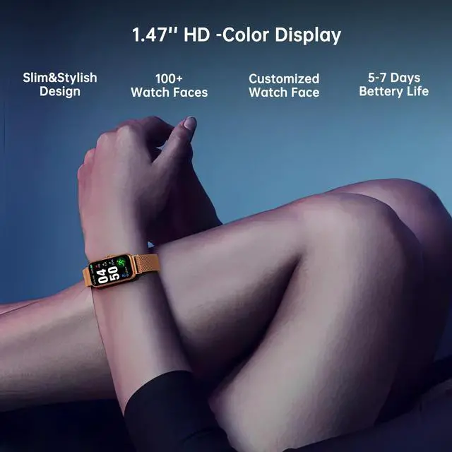 1.47’’ HD color screen with lightweight advanced materials, which make the smart watch lighter, brighter and more comfortable to wear. Syncs the notifications of calls, messages of the apps like Whatsapp, Twitter, Facebook, Instagram, and etc. Store message for you, won’t miss any messages or phone calls.