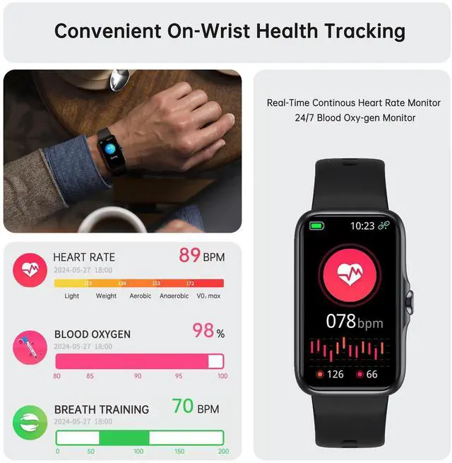 Enjoy additional features including weather forecasts, breathing training, music control, alarm clock, shutter control, find phone, stopwatch, sedentary alerts, and more. Your fitness tracker serves as a comprehensive life partner