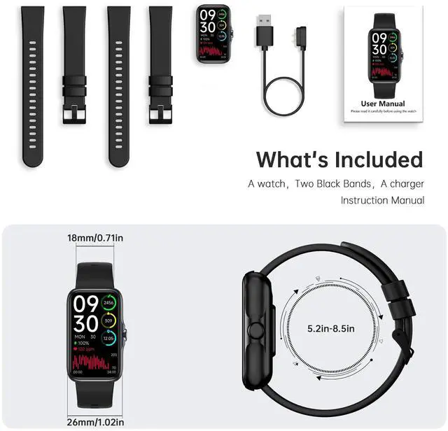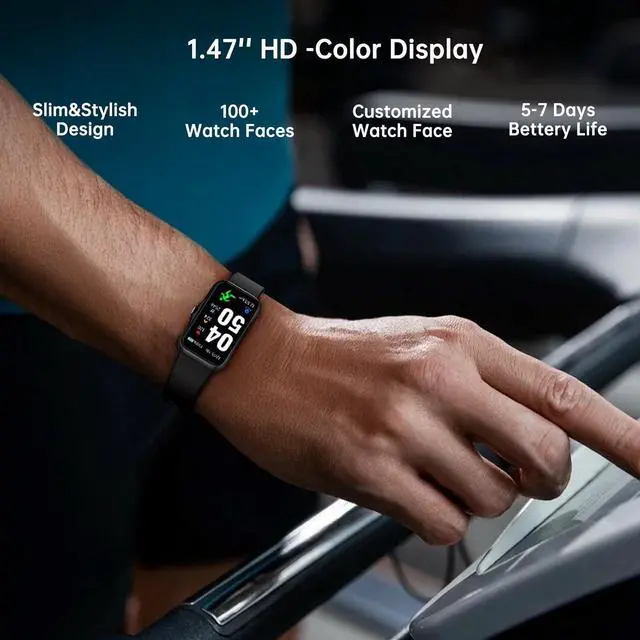 1.47’’ HD color screen with lightweight advanced materials, which make the smart watch lighter, brighter and more comfortable to wear. Syncs the notifications of calls, messages of the apps like Whatsapp, Twitter, Facebook, Instagram, and etc. Store message for you, won’t miss any messages or phone calls.
