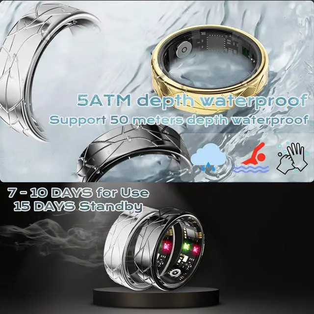(1)Tracks sleep/workouts/steps/heart rate//otherhealth data better than watches. Gesture controls for photos/short videos. (2)Monitors deep/light/awake sleep. Lightweight design. App charts improve sleepquality. (3)Syncs heart rate/other health data/steps/sleep analysis on app homepage. Precise sensors for reliable results. (4)Logs routes, steps, calories, duration, speed & heart rate in activity mode. Multiple sports supported. (5)5ATM waterproof. 7-10 days use. 15 days standby.