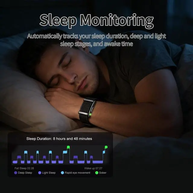 Day and Night Sleep TrackingExperience 24/7 hume band with our newly upgraded Health Wristband. Monitor your nighttime sleep and daytime naps for a comprehensive rest analysis. Get professional insights into your sleep stages (light, deep, REM), sleep duration, and awake time. Understand your unique sleeping patterns with detailed reports. Optimize your sleep, enhance recovery, and wake up refreshedmake smarter adjustments for truly restful nights.