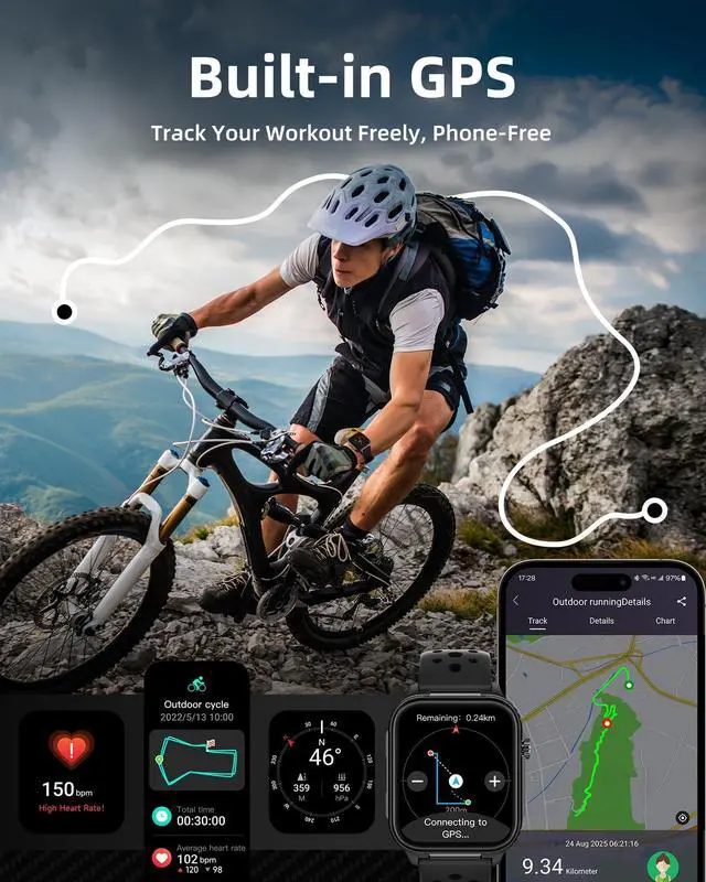 EMBARK ON ADVENTURES WITH GPS, COMPASS & LED FLASHLIGHT PHONE-FREE: Leave your phone behind and explore with the GPS smartwatch. Track your runs, hikes, and trails with precise GPS and stay on course with the built-in compass. Built for toughness, it features a powerful LED flashlight for night exploration, perfect for camping and climbing. With a rugged, waterproof design, you can track steps, heart rate, and activity data no matter where your adventure takes you. Ready for any journey, this smartwatch is your ultimate outdoor companion.
