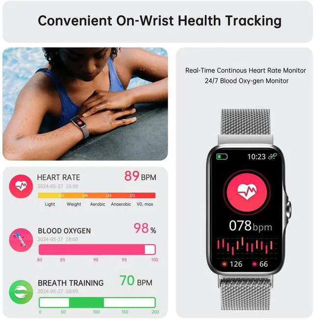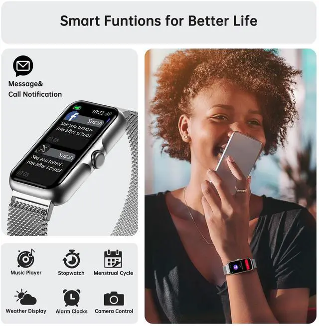 Enjoy additional features including weather forecasts, breathing training, music control, alarm clock, shutter control, find phone, stopwatch, sedentary alerts, and more. Your fitness tracker serves as a comprehensive life partner
