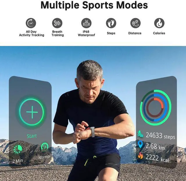 Benefit from well-designed 24+ sports modes: Outdoor Running, Indoor Running, Yoga, Cycling, Skipping, Walking, Baseball, Basketball, Table tennis, Badminton, Dancing, Rugby, Tennis, football, Cricket etc. Exercise with you 365 days, improve the latest algorithm of running data to get more accurate data.
