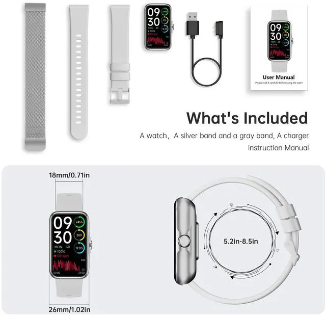 1.47’’ HD color screen with lightweight advanced materials, which make the smart watch lighter, brighter and more comfortable to wear. Syncs the notifications of calls, messages of the apps like Whatsapp, Twitter, Facebook, Instagram, and etc. Store message for you, won’t miss any messages or phone calls.