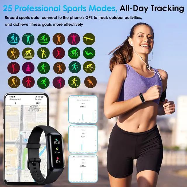 25 Sports Modes & All-Day Activity Tracking: Fitness tracker watch provides 25 sports modes, such as running, cycling, yoga, and rugby; no matter how you exercise, the fitness tracker will adapt to your needs, tracking and recording all-day activities, including steps, distance and calories burned, to help you achieve your fitness goals more effectively; you can use the GPS connected to your phone to track outdoor activities and get accurate distance, speed and route information in the app
