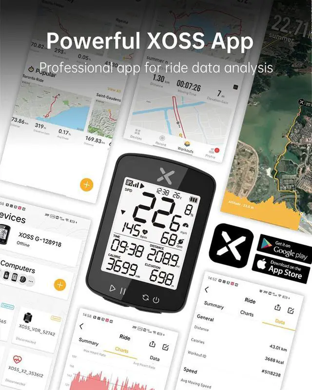 - Via Bluetooth, you can connect G+ Gen2 to mobile phone apps such as XOSS, Strava, MapMyRide, Cyclemeter, and more.