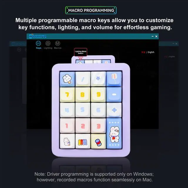 1. Driver software is only compatible with Windows for programming; once macros are recorded, they can be used on Mac without issues.