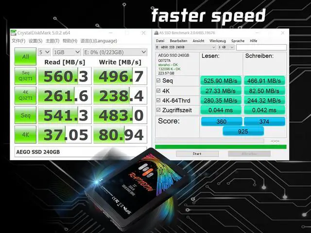 AEGO 2.5 inch SSD (Solid State Drives) fully consists of semiconductor devices and using 3D NAND which provide high reliability and high performance for a storage media and offer a better solution for notebook PC, Tablet PC and industrial PC with a higher performance and a low power consumption in a small form factor. 240GB SSD has the same host interface with Solid State Hard Drive. 2.5 inch form factor and a same physical dimension Serial ATA interface of 6.0 Gbps (SATA III)