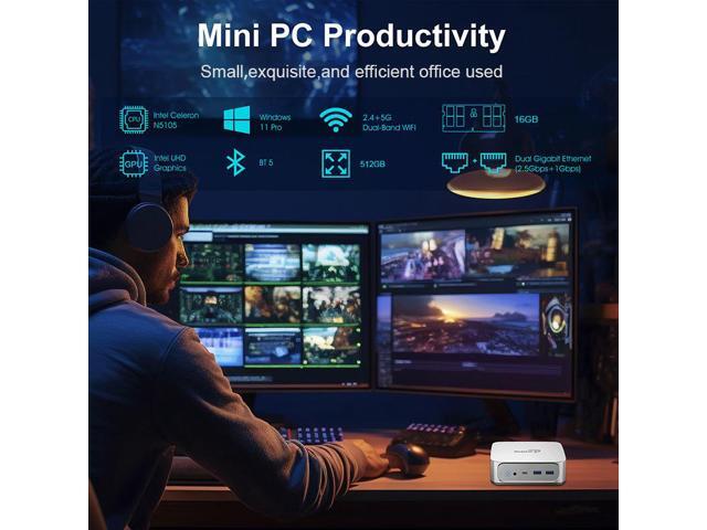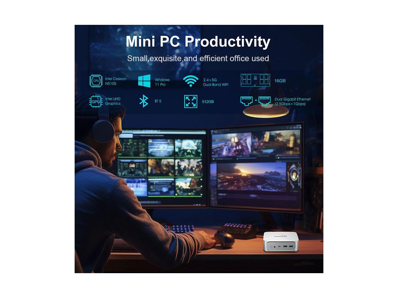 AEROFARA Mini PC Intel Celeron N5105 16GB RAM DDR4 512GB SSD, Windows 11 Pro Mini Desktop Computer Support 4K@60Hz, HD/DP/Type-C Ports, Triple-Screen Display,4xUSB 3.0, WiFi5/BT5/Dual LAN Micro PC