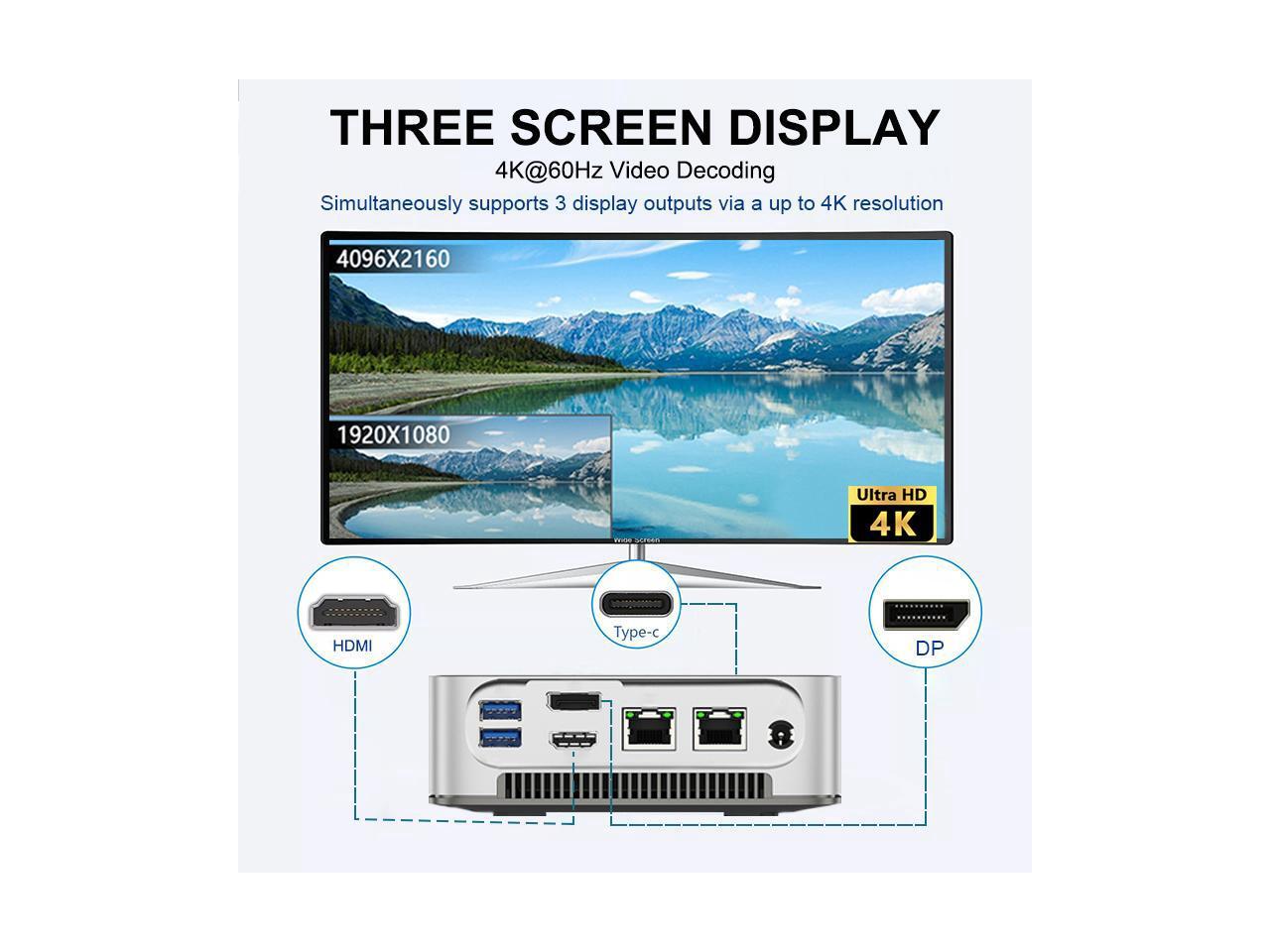 - Display:Three-screen Display(HDMI+Type-c+DP)