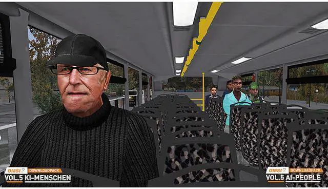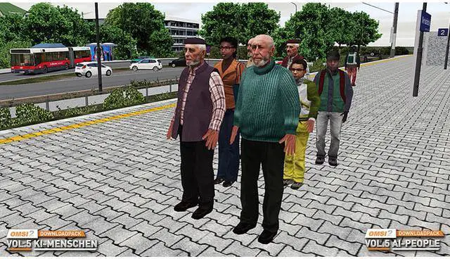 | Feature | Who is Sid Surley? Don’t worry, you'll have a chance to meet the grouchy pensioner soon enough. Sid Surley and lots more new passengers are waiting to board in OMSI2. They range from mischievous children on their way to school to an impatient old man who needs to get to his doctor's appointment on time. Friendly or bossy, young or old - the Download Pack Vol. 5 has lots of different new AI characters for all OMSI maps. People of varying ages in a total of over 180 variants with 6 different types and lots of accessories - school satchels, hats, scarves, waistcoats , glasses, bags - offer even more variety. Over 200 new German voice files have been professionally recorded in a sound studio specially for this add-on, so that children actually sound like children and you can tell a pensioner’s age just from their voice. And for the first time, we've included passenger voices in English for English-speaking OMSI players. With the OMSI 2 Download Pack Vol. 5, you get even more passengers for your OMSI maps - making the game even more fun! NOTE: Before AI people can appear on existing OMSI maps, the people in the OMSI 2 Download Pack Vol. 5 must be added to the maps manually. Follow the instructions provided to achieve this. Further distribution of the AI people in the OMSI 2 Download Pack Vol. 5, whether individually or together with freeware maps, is not permitted for reasons of copyright. |