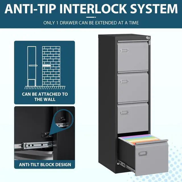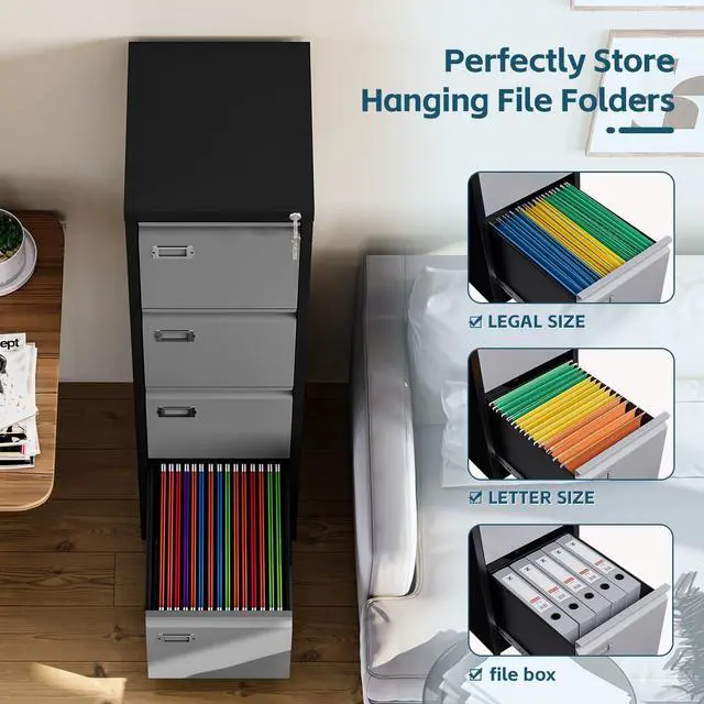 52.4" height vertical 4-drawer file cabinet fits most home office