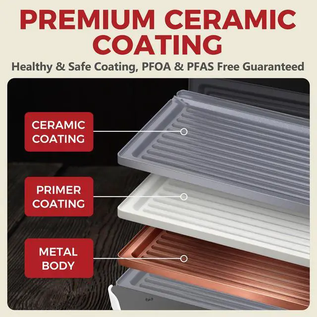 [Food-Grade Materials]: Crafted with a premium food-grade ceramic coating, this panini press sandwich maker is PFOA and PFAS-free, delivering healthier, safer and more reliable cooking with every use.