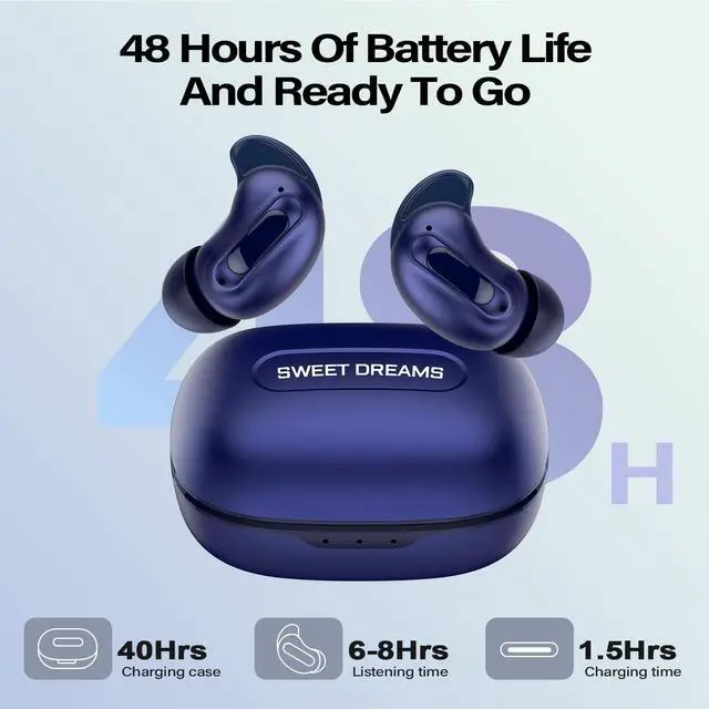 Sleep Earbuds, Mini ANC Wireless Earbuds Bluetooth 5.4 Headphones Deep Bass Stereo, 48H Playtime Ear Buds, 4 ENC Noise Cancelling Mic In Ear IP7 Earphones for Side Sleepers Touch Control Sapphire Blue