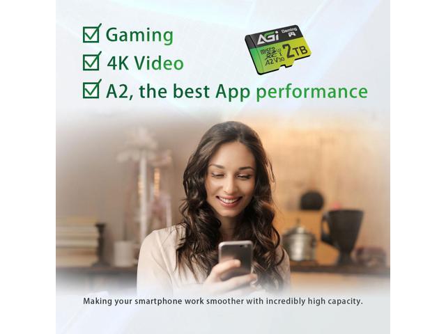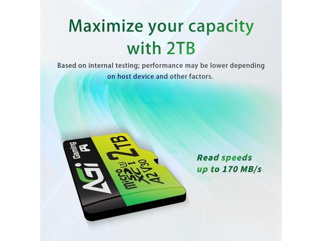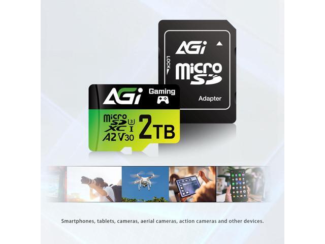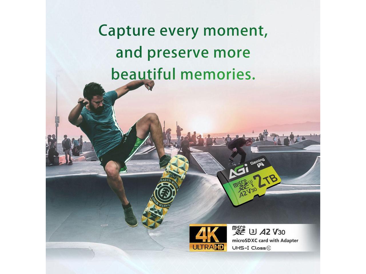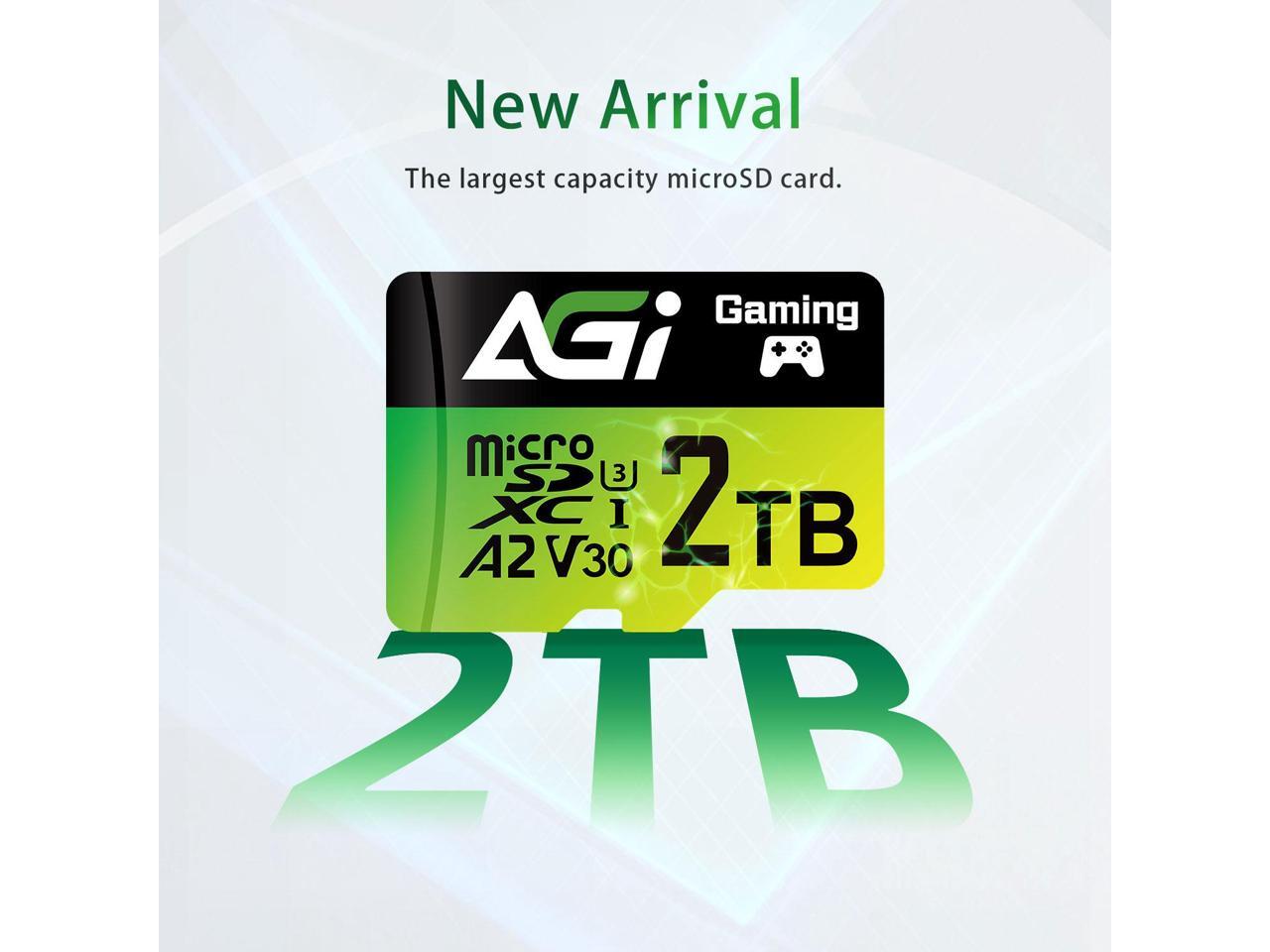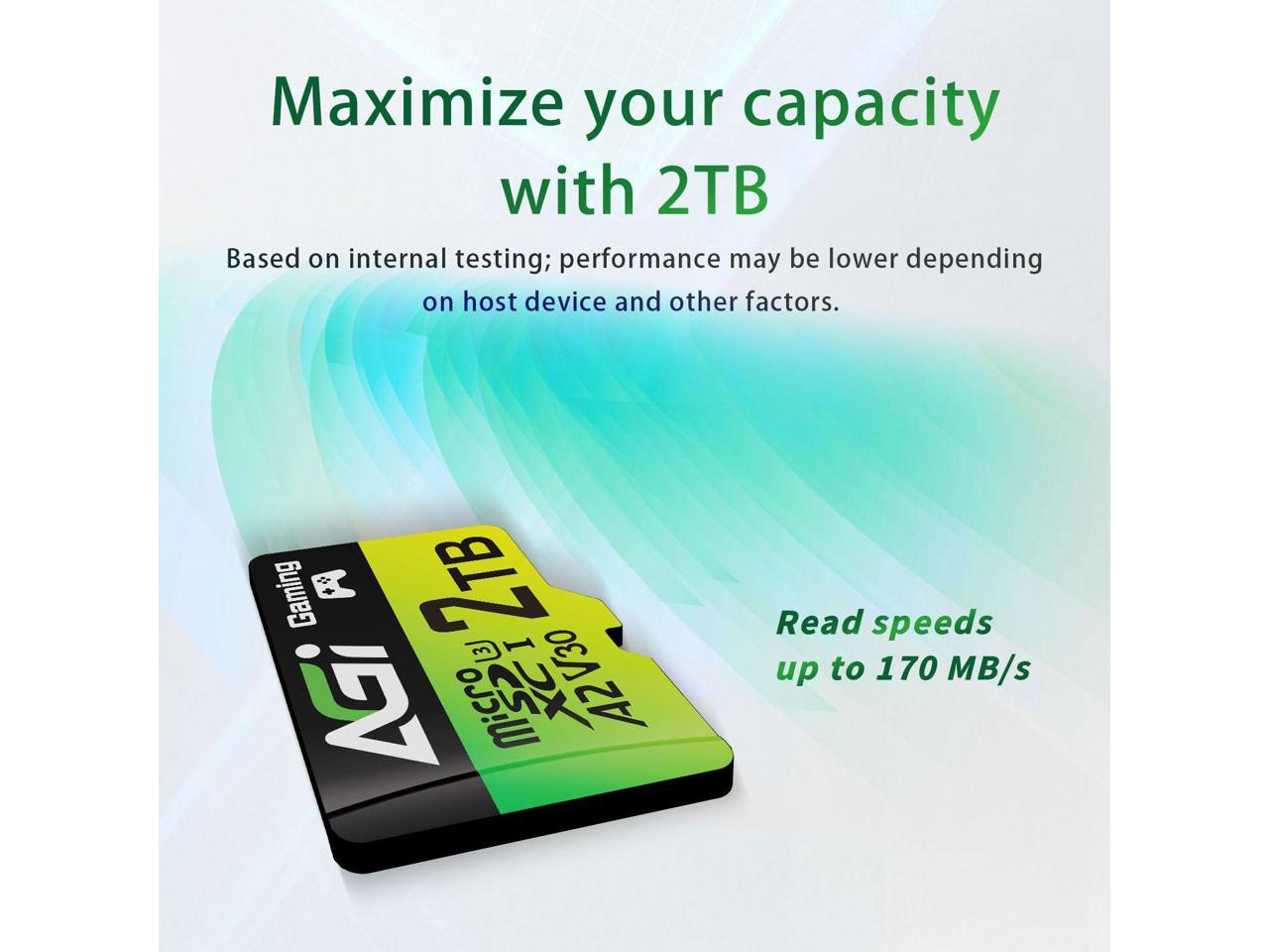AGI 2TB TF138 MicroSD Memory, High-Capacity Storage Suit for Gaming. MicroSDXC A2 U3 V30 4K UHS-I U3 (Read Speed up to 170 MB/s, Write Speed up to 160 MB/s) with SD Card Adapter