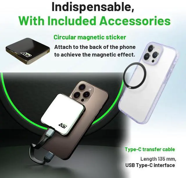 Slim and Portable Design: With a lightweight, slim design and MagSafe magnetic compatibility, it securely attaches to your phone for effortless use and portability.