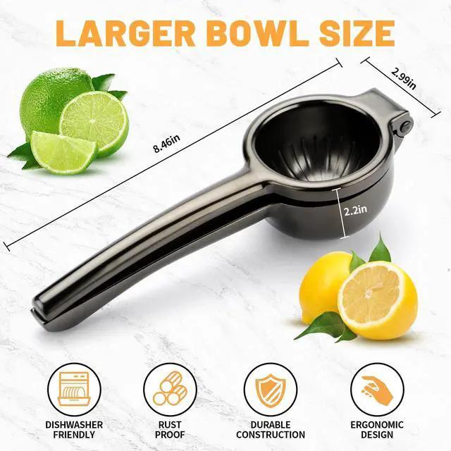 Save Time and Space You no longer have to worry about power, replacing batteries, or even bulky juicers crowding your kitchen counter with our easy-to-store citrus squeezer. Quench your thirst by making a citrusy lemonade or margarita in seconds; simply place a half cut lemon/lime in the bowl and watch the citrusy goodness add flavor to your drink or meal