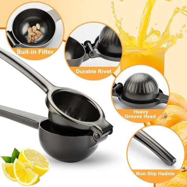 Sturdy and Heavy Duty Our lemon press is made with rust-resistant 304 stainless steel that is riveted for a more durable build. It is designed to fit all types of lemons and limes, such as Meyer lemons, key limes, limequats, Mexican limes, Eureka, or Lisbon lemons, Rangpur or Tahiti limes, and much more. This manual juicer is a great addition to your cocktail accessories for years to come