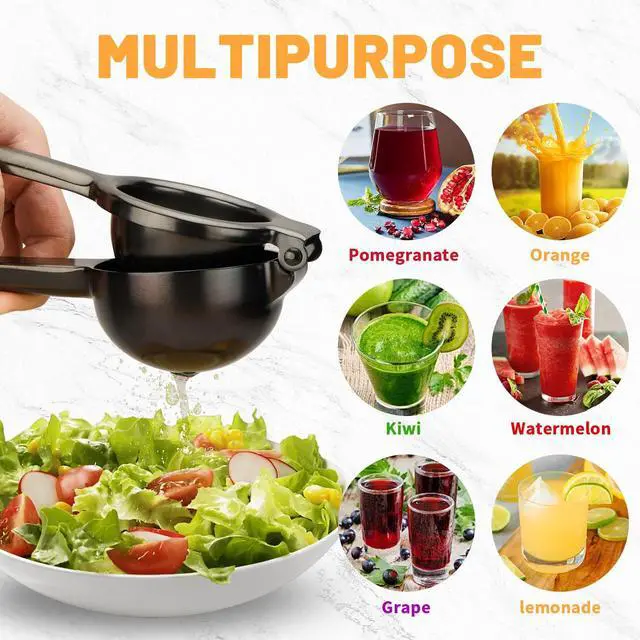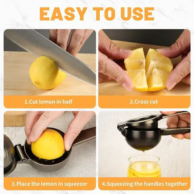 Easy to Use & CleanThis Lime squeezer adopts a humanized appearance: portable and effortless. Smooth lines prevent hand pain. Simple operation: open the clip, take out half of the lemon peel and press upwards, squeeze fresh juice in one second. Also, very easy to clean, just rinse with clean water, eliminating the cumbersome cleaning problems of traditional juicers. Process and also power-saving, health, and environmental protection