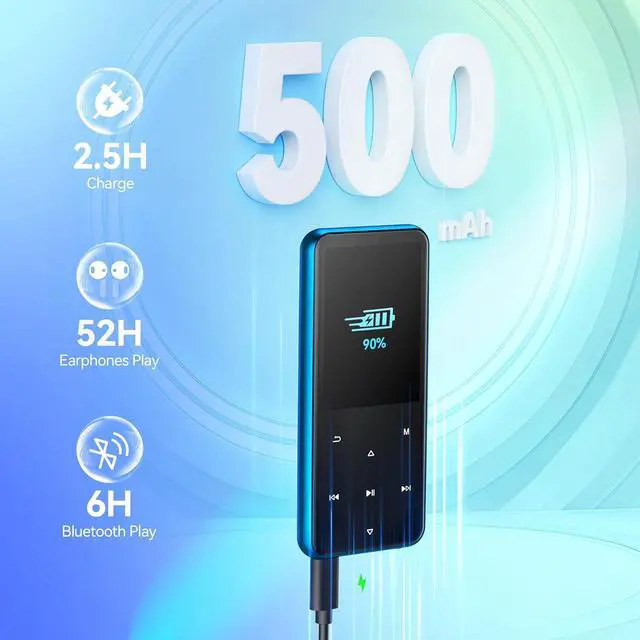 • Bluetooth 5.3 & Automatic ReconnectionAGPTEK M3 MP3 music player adopts Bluetooth 5.3 technology, more stable connection, better compatibility, and lower consumption. You can pair the Bluetooth MP3 Player with wireless headphones or a Bluetooth speaker, automatically connects to the last Bluetooth device it was connected to, as soon as it is activated.
