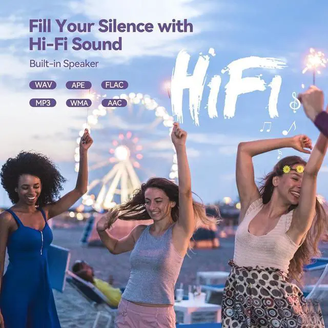 HiFi Lossless Sound & Sports Partner With a professional audio decoding chip and smart noise reduction chip, AGPTEK MP3 player brings you original lossless music. With breakpoint resume function, perfect for doing sports, Yoga, exercise, running, travel, etc. Supports music formats like MP3/APE/FLAC/WMA/WAV/AAC [Note It does not directly support Audiobook and iTunes.]